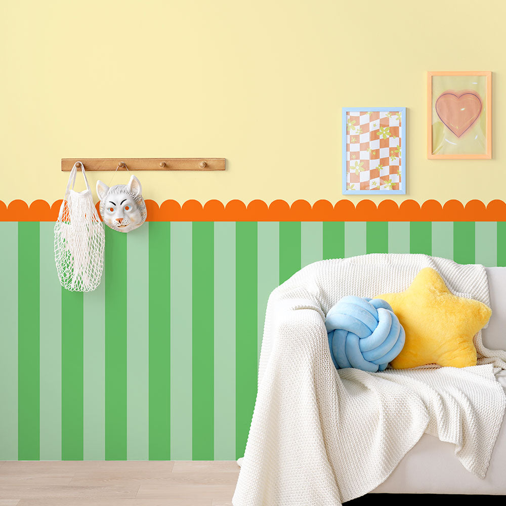 はがせる壁紙 のりなしタイプ What's poppin? ジェリーストライプ (49cm×3mサイズ) NWP-JSS04 サニーガーデン(スカラップ)