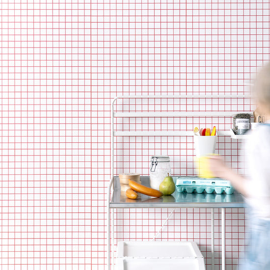 はがせる壁紙 のりなしタイプ What's poppin? ミニスクエアタイル カラージョイント (49cm×2.5mサイズ) カーニバルチェリー