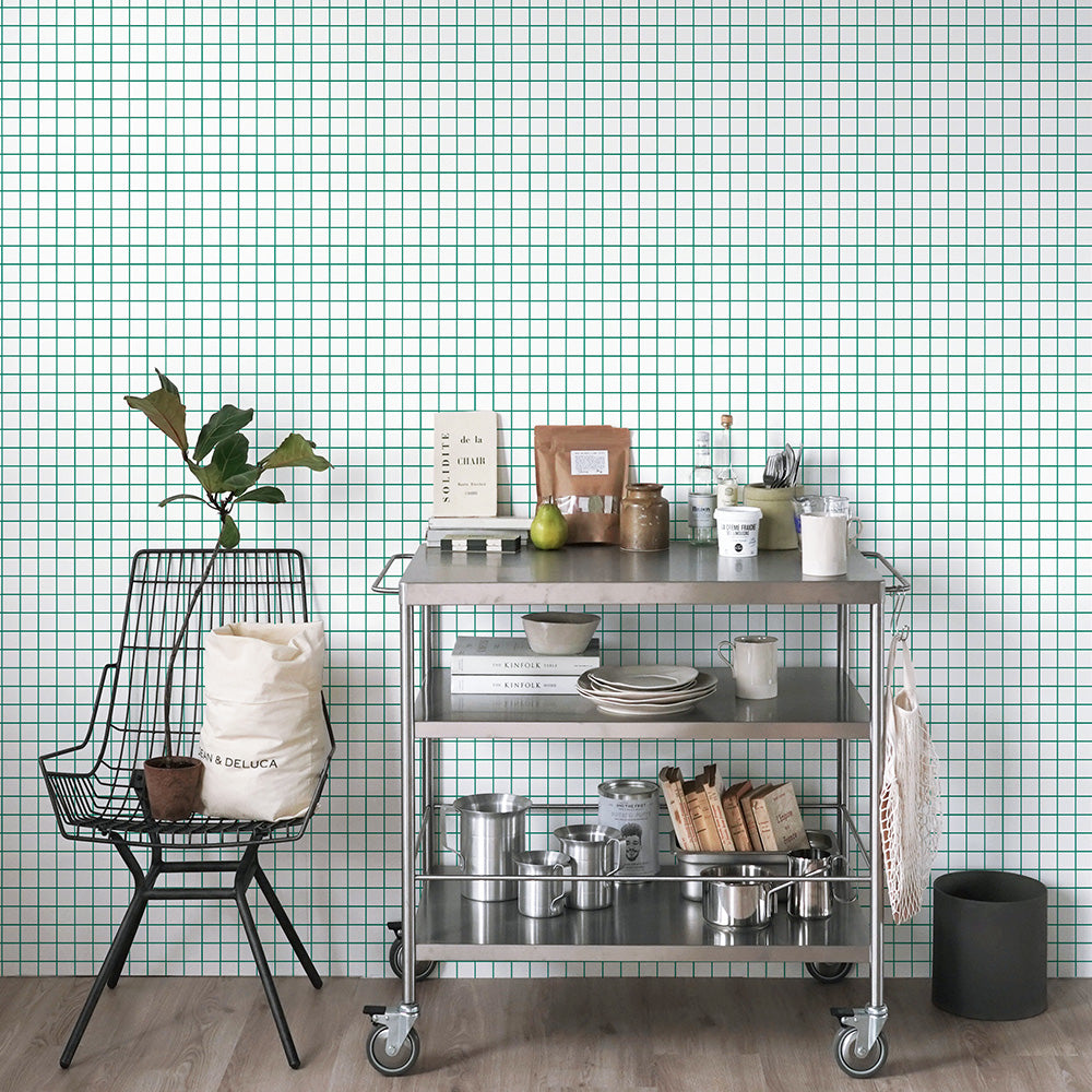 はがせる壁紙 のりなしタイプ What's poppin? ミニスクエアタイル カラージョイント (49cm×3mサイズ) フレッシュバジル