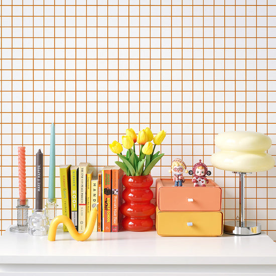はがせる壁紙 のりなしタイプ What's poppin? ミニスクエアタイル カラージョイント (49cm×2.5mサイズ) キャロットポップ