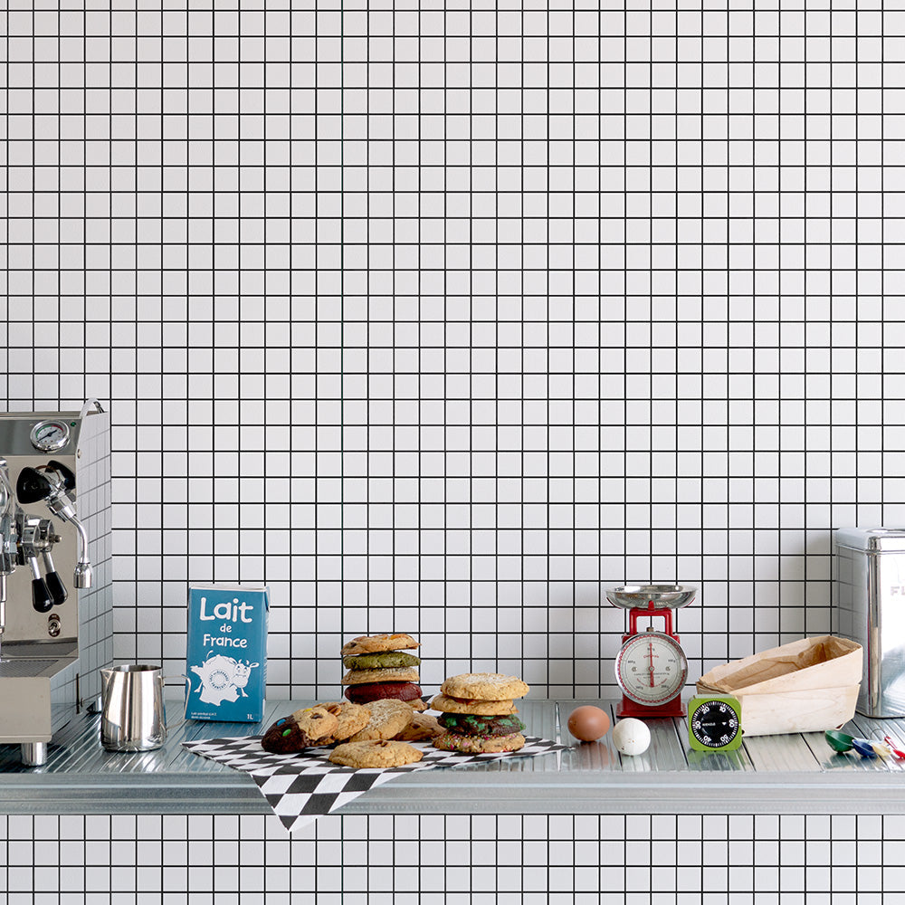 はがせる壁紙 のりなしタイプ What's poppin? ミニスクエアタイル カラージョイント (49cm×3mサイズ) モノクロチップ