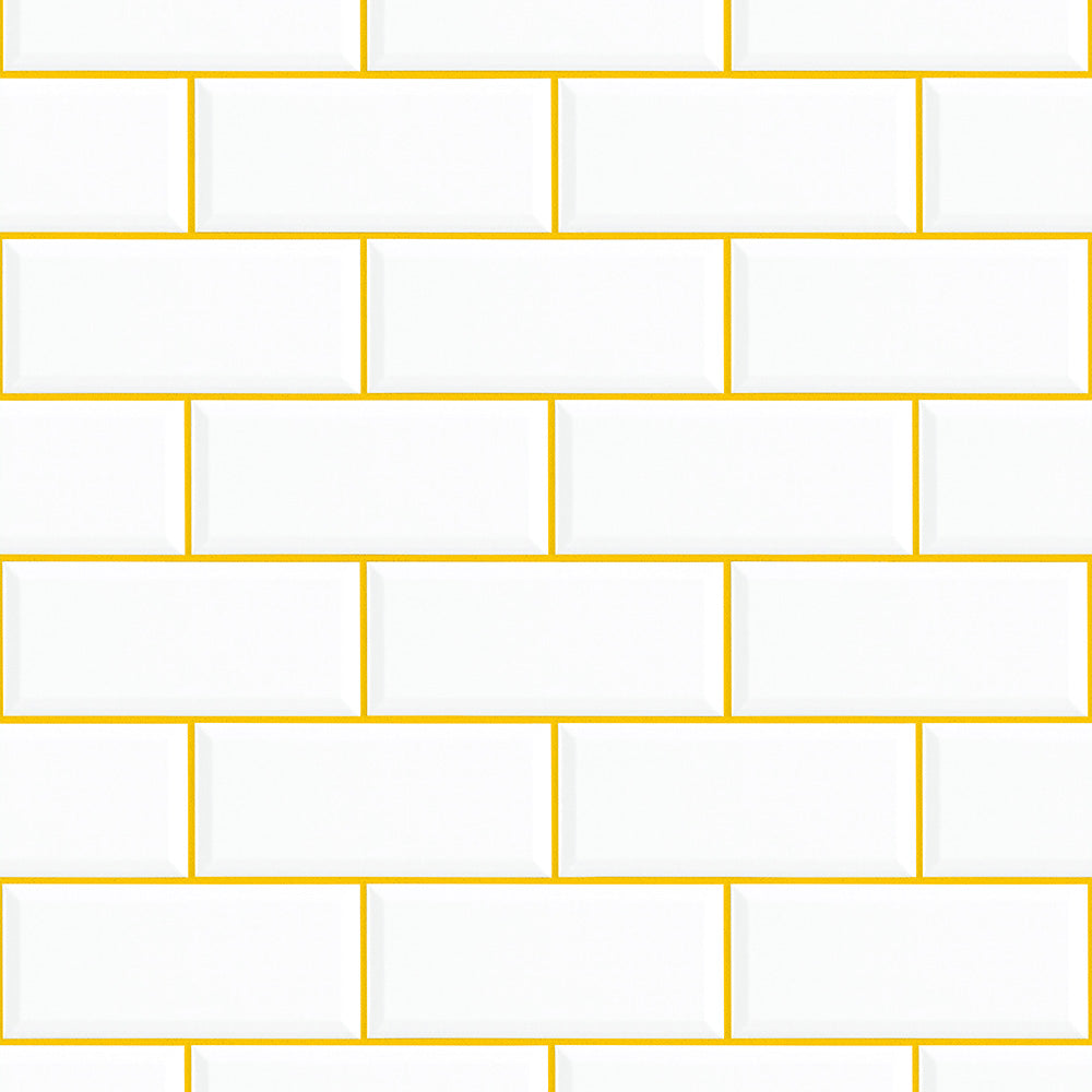 はがせる壁紙 のりなしタイプ What's poppin? メトロタイル カラージョイント (49cm×2.5mサイズ) サンシャインイエロー