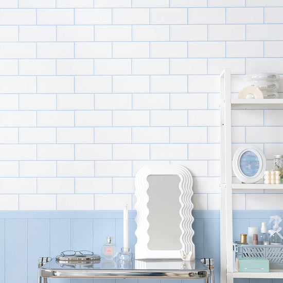 はがせる壁紙 のりなしタイプ What's poppin? メトロタイル カラージョイント (49cm×3mサイズ) シュガーブルー