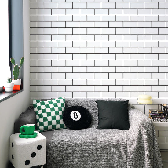 はがせる壁紙 のりなしタイプ What's poppin? メトロタイル カラージョイント (49cm×2.5mサイズ) モードブラック