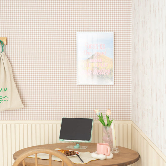 はがせる壁紙 のりなしタイプ What's poppin? ピクニックギンガム (49cm×2.5mサイズ) ミルクモカ