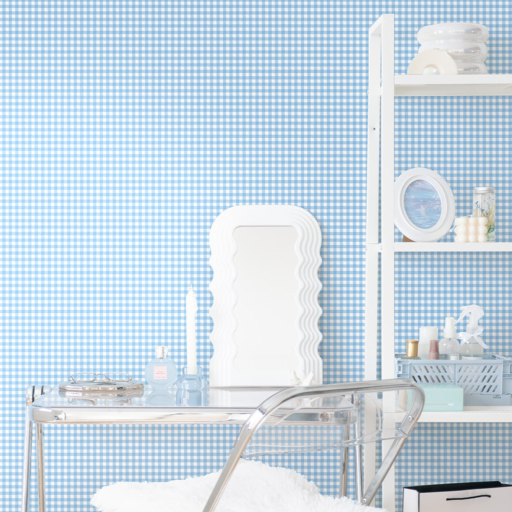 はがせる壁紙 のりなしタイプ What's poppin? ピクニックギンガム (49cm×3mサイズ) ブルースカッシュ