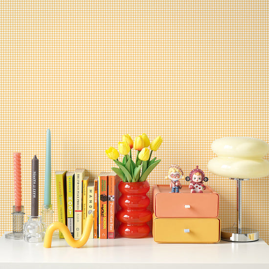 はがせる壁紙 のりなしタイプ What's poppin? ピンクニックギンガムmini (49cm×3mサイズ) サンシャワー