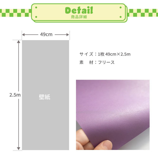貼りやすいフリース壁紙(のりなし) What's poppin? 無地 パープル (49cm×2.5mサイズ) PL105