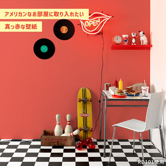 はがせる壁紙 のりなしタイプ What's poppin? 無地 ピンク・レッド (49cm×3mサイズ) RD204