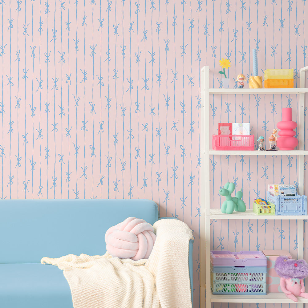 はがせる壁紙 のりなしタイプ What's poppin? リボンストライプ カラフル (49cm×3mサイズ) シュガーフロス