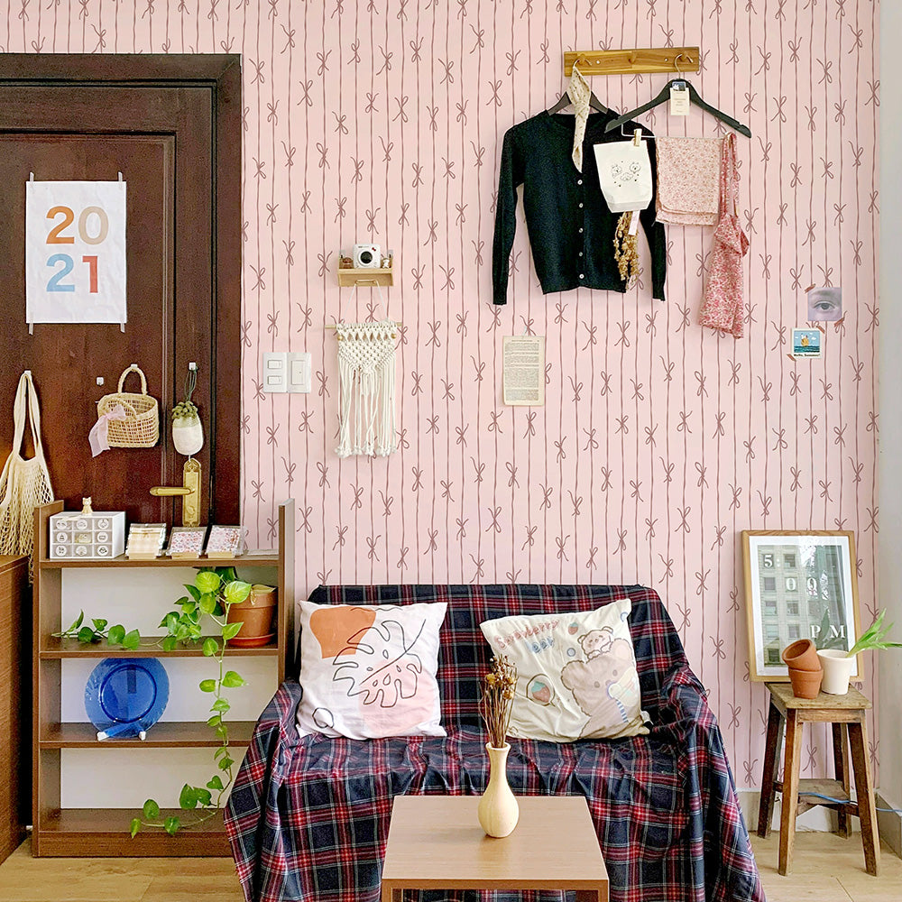 はがせる壁紙 のりなしタイプ What's poppin? リボンストライプ カラフル (49cm×3mサイズ) チョコベリー