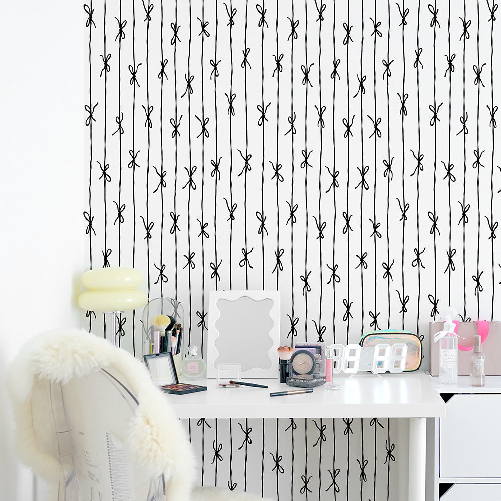 はがせる壁紙 のりなしタイプ What's poppin? リボンストライプ ナチュラル (49cm×3mサイズ) ノワール