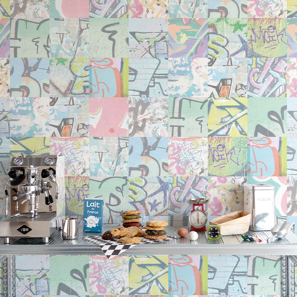 貼りやすいフリース壁紙 のりなしタイプ What's poppin? アーバンスプラッシュ (49cm×2.5mサイズ) NWP-US02 Neon Break / BRIGHT