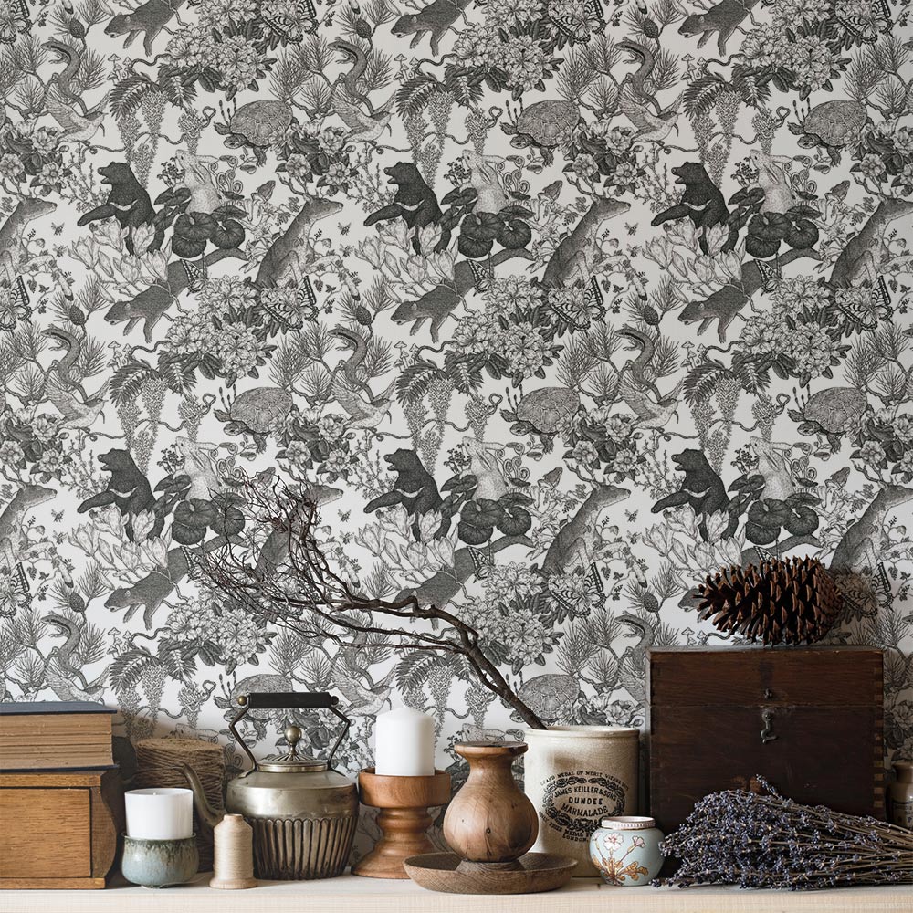 【卸専用】はがせる壁紙 のりなしタイプ WALLTZ ウォルツ 村山大明 Japanese forest Black NWZ-JFBK (49cm×2.7mサイズ)