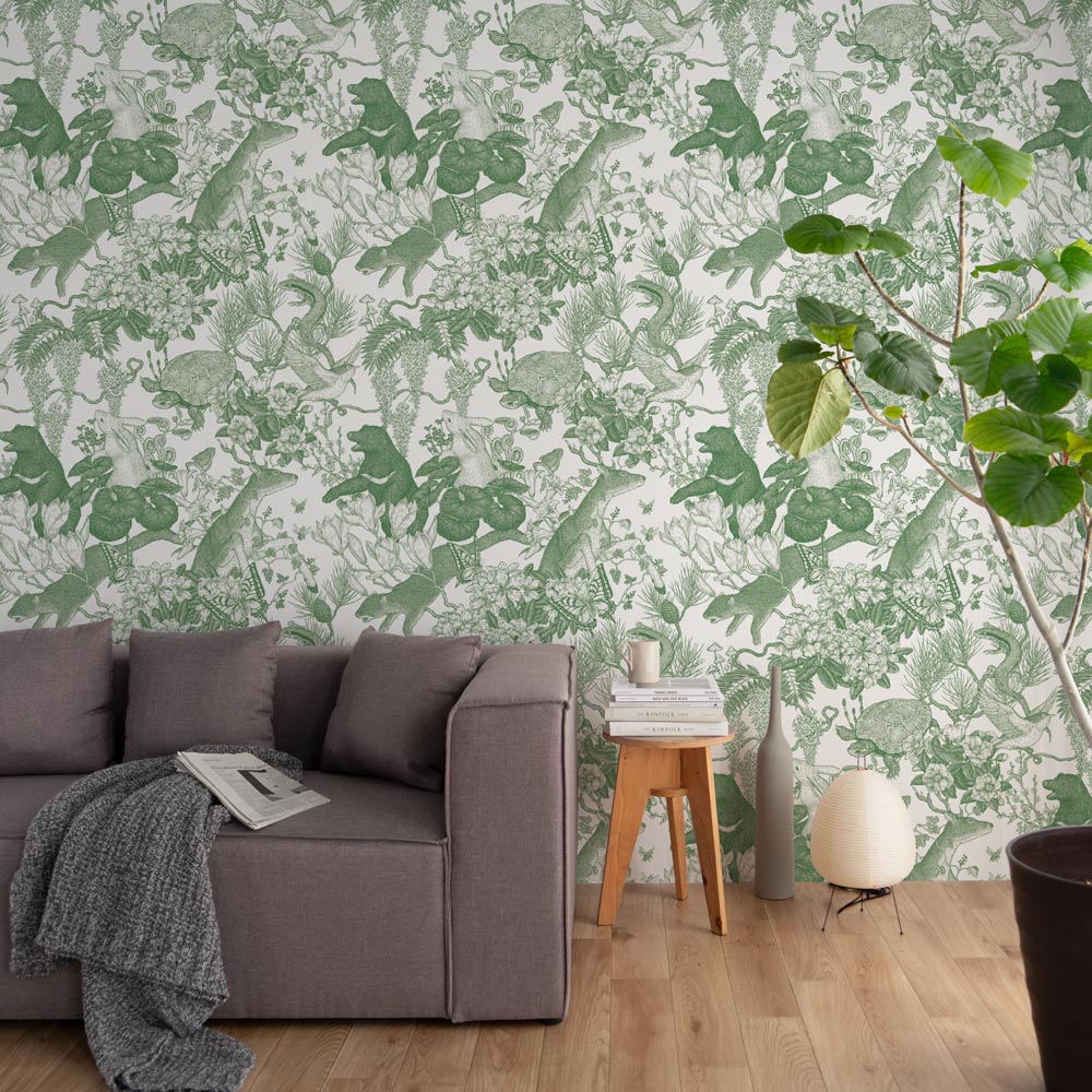 【卸専用】はがせる壁紙 のりなしタイプ WALLTZ ウォルツ 村山大明 Japanese forest Double Green NWZ-JFDGR (49cm×3.3mサイズ)