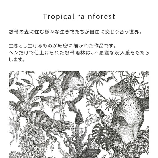ペンだけで仕上げられた熱帯雨林は、不思議な没入感をもたらします。