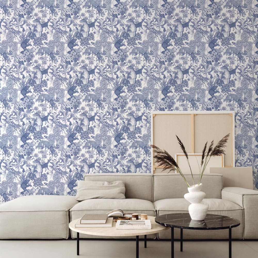 【卸専用】はがせる壁紙 のりなしタイプ WALLTZ ウォルツ 村山大明 Tropical rainforest Blue NWZ-TFBL (49cm×2.7mサイズ)
