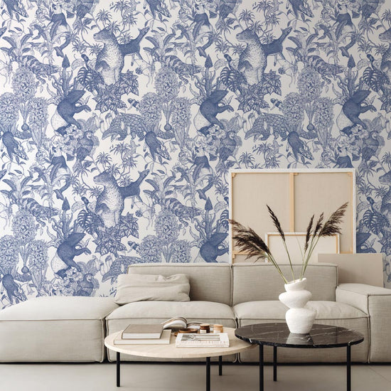 【卸専用】はがせる壁紙 のりなしタイプ WALLTZ ウォルツ 村山大明 Tropical rainforest Double Blue NWZ-TFDBL (49cm×3mサイズ)