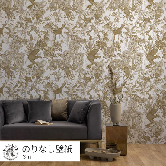 【卸専用】はがせる壁紙 のりなしタイプ WALLTZ ウォルツ 村山大明 Tropical rainforest Double Brown NWZ-TFDBR (49cm×3mサイズ)