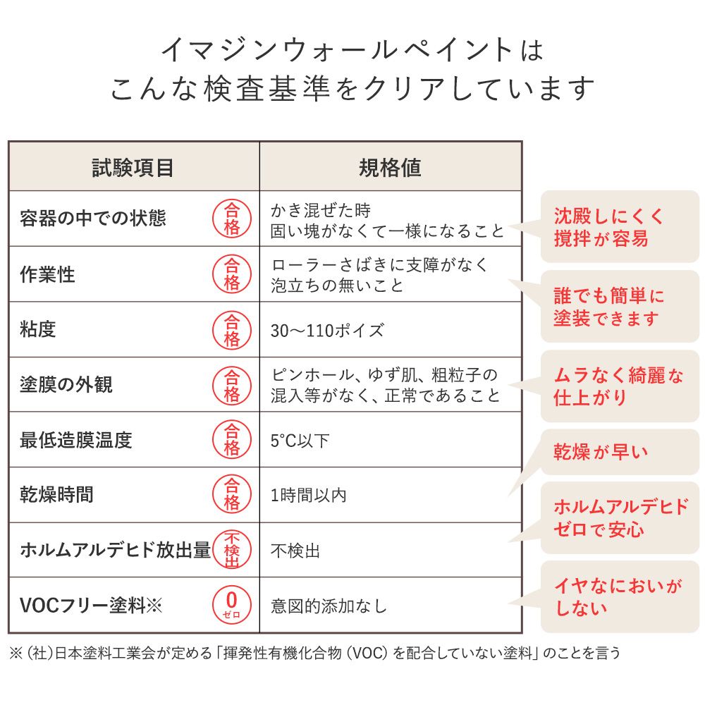 | 成分 | 合成樹脂(アクリル酸エステル共重合体)、顔料、水、防カビ剤 |