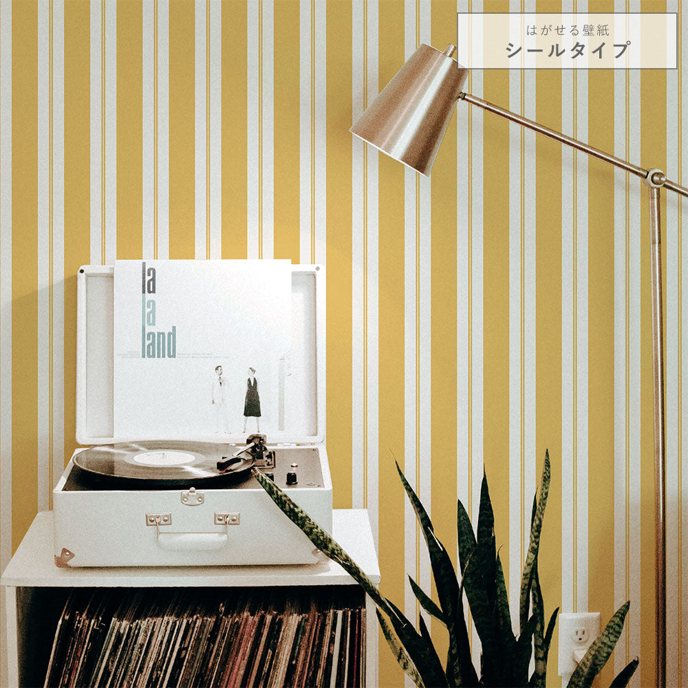 はがせる壁紙 シールタイプ アイビーストライプA (49cm×3mサイズ) TKH-ASA01 イエロー