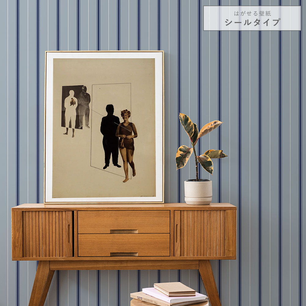 はがせる壁紙 シールタイプ アイビーストライプC (49cm×3mサイズ) TKH-ASC01 ブルー