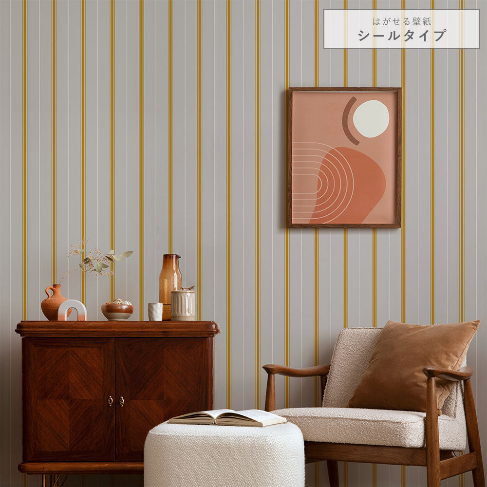 はがせる壁紙 シールタイプ アイビーストライプC (49cm×3mサイズ) TKH-ASC02 グレー
