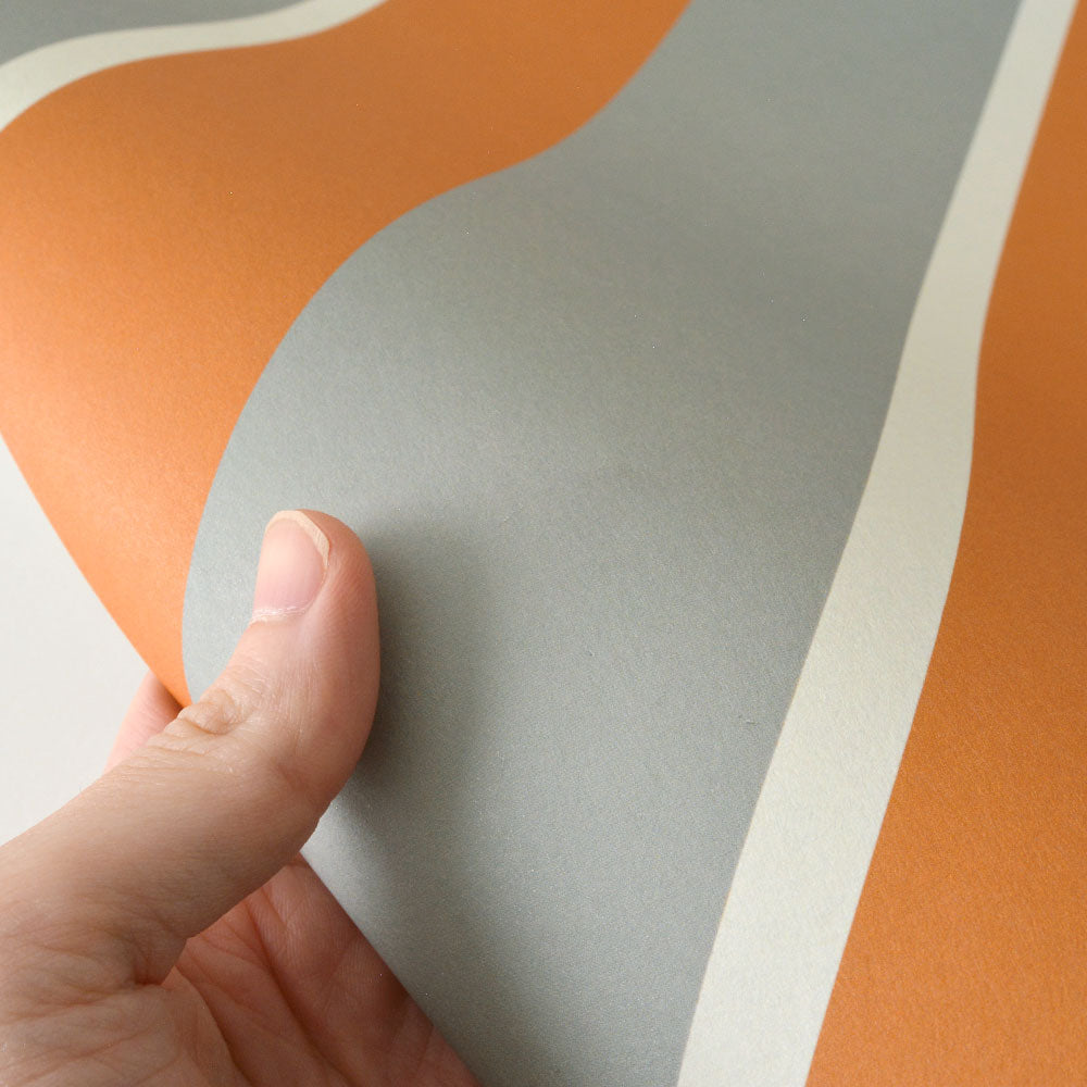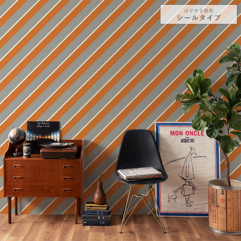 はがせる壁紙 シールタイプ アイビーストライプE (49cm×2.5mサイズ) TKH-ASE03 グレー×オレンジ
