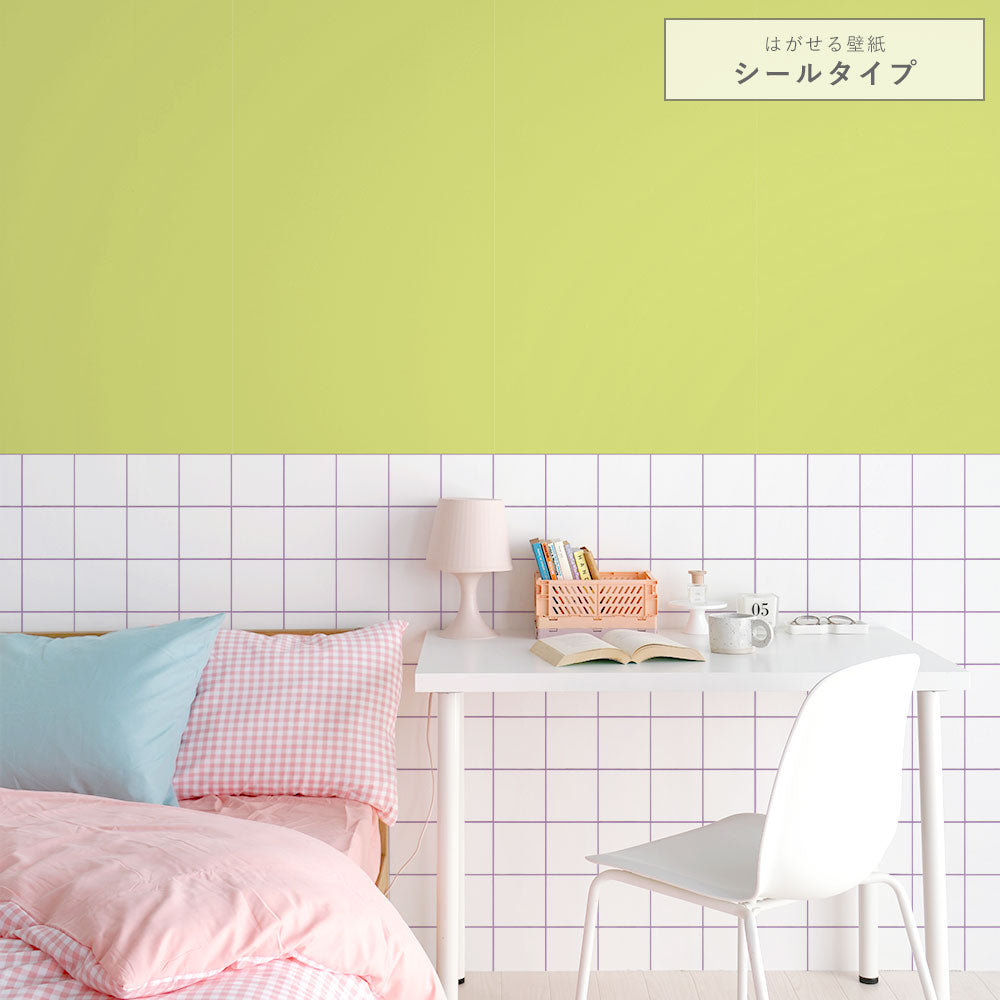はがせる壁紙 シールタイプ カラフルPOPタイル (49cm×3mサイズ) TKH-CP05 ライトグリーン×パープル目地