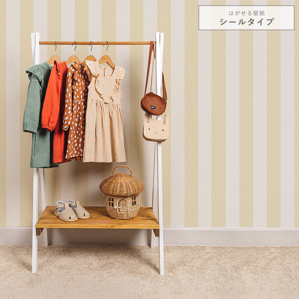 はがせる壁紙 シールタイプ キャンディストライプA (49cm×2.5mサイズ) TKH-CSA03 くすみイエロー