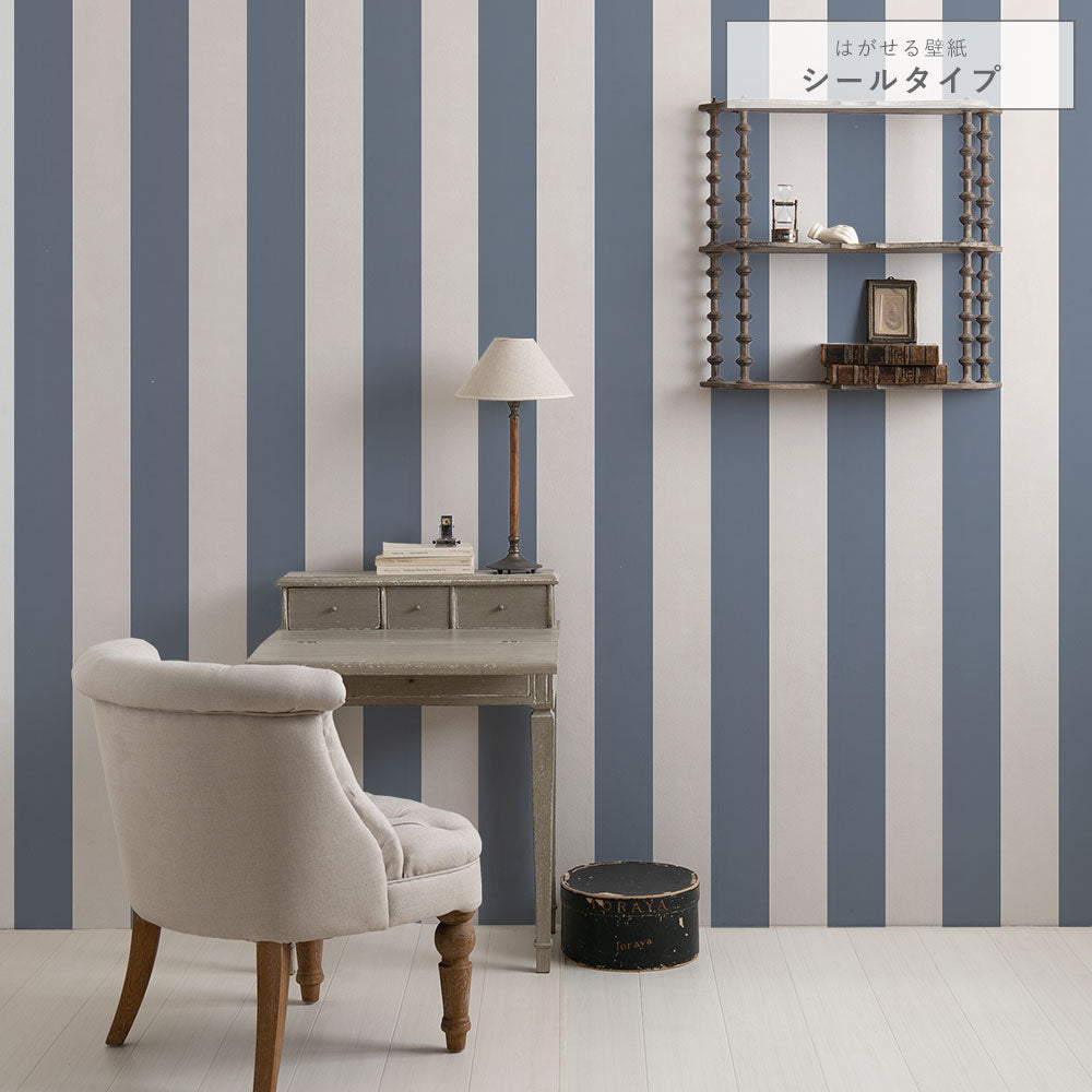 はがせる壁紙 シールタイプ ロンドンストライプW2 (49cm×2.5mサイズ) TKH-LS201 ブルーグレー