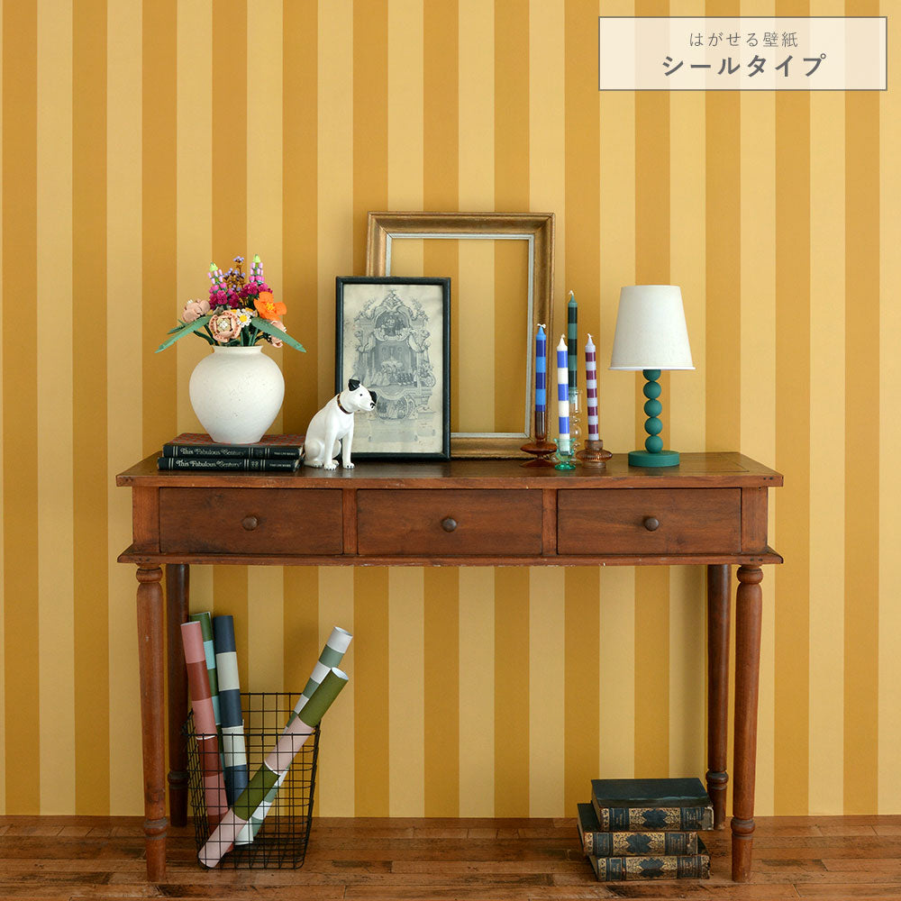 はがせる壁紙 シールタイプ ロンドンストライプW3 (49cm×3mサイズ) TKH-LS306 マスタード×イエロー