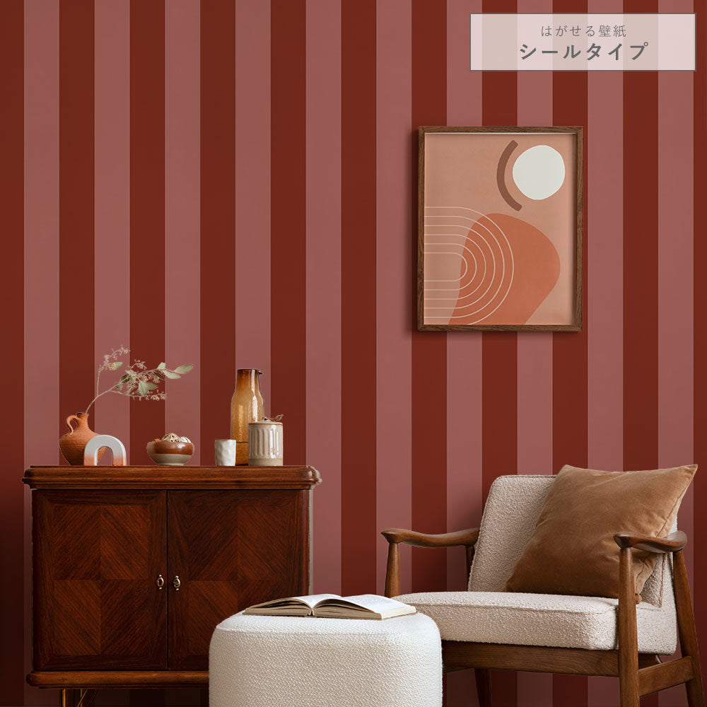 はがせる壁紙 シールタイプ ロンドンストライプW3 (49cm×3mサイズ) TKH-LS310 レッド×チェリー