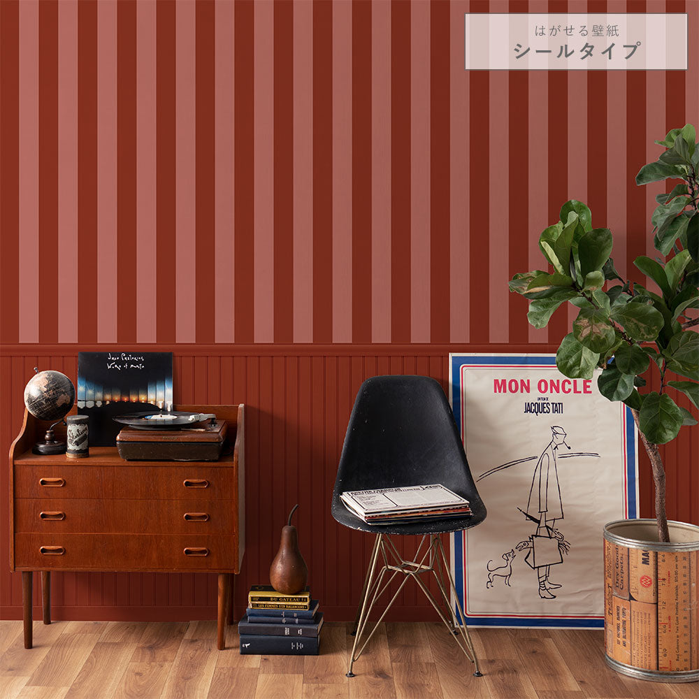 はがせる壁紙 シールタイプ ストライプ切り替えパネル (49cm×3mサイズ) TKH-SPK05 レッド×チェリー