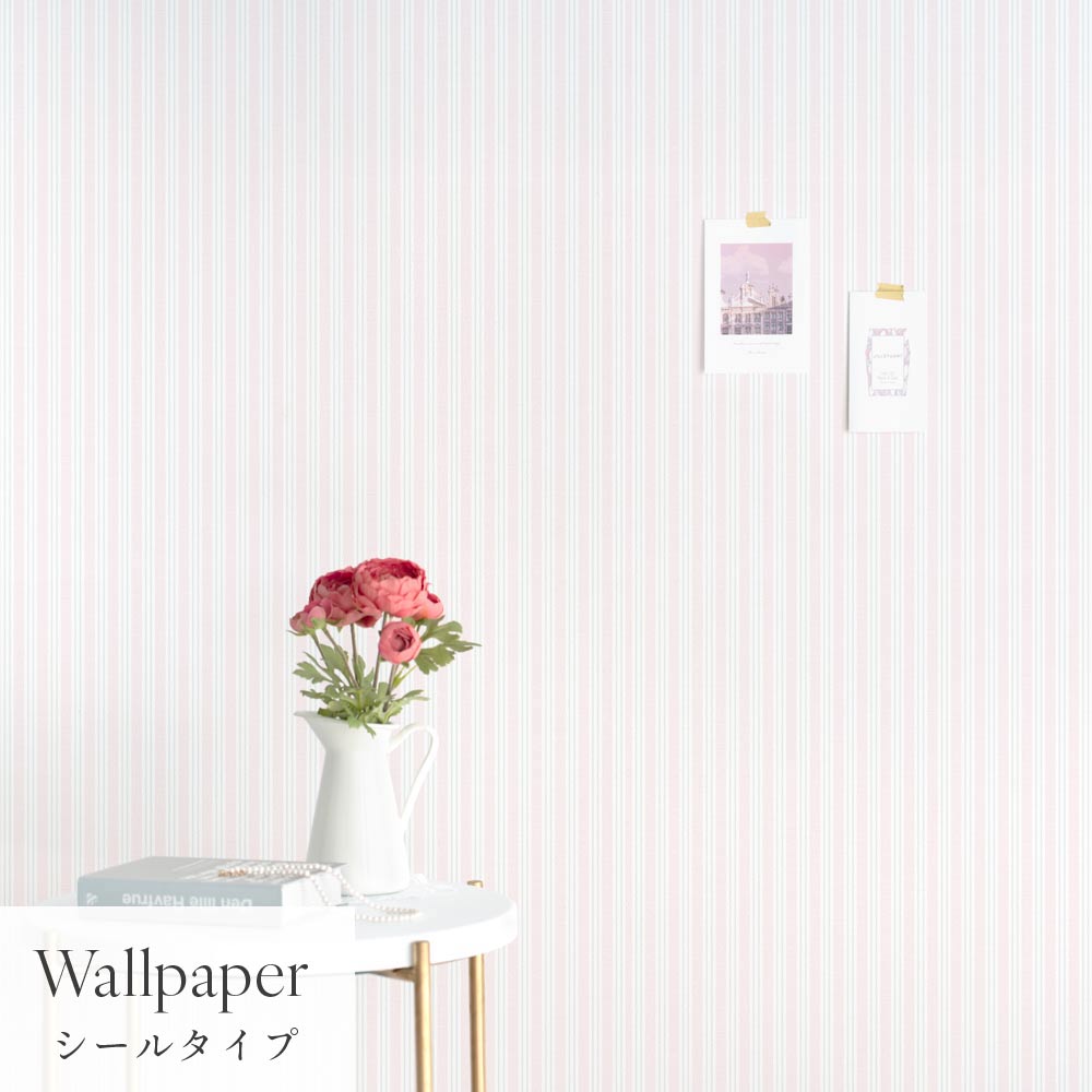 はがせる壁紙 シールタイプ Mon Sucrier カントリーストライプ (49cm×3mサイズ) TMS-CO03 花瓶