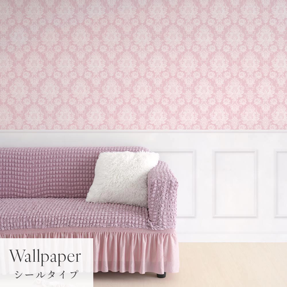 はがせる壁紙 シールタイプ Mon Sucrier パネリングゴージャス (49cm×3mサイズ) TMS-GGP01 ピンク×ホワイトスクエア