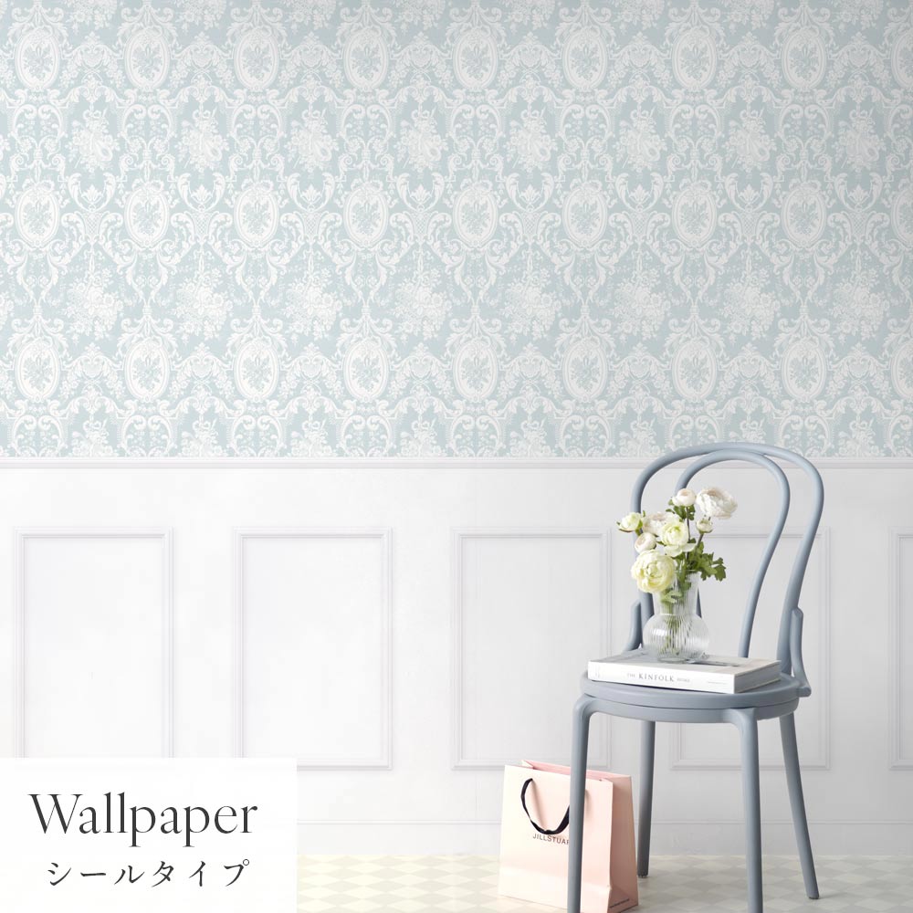 はがせる壁紙 シールタイプ Mon Sucrier パネリングゴージャス (49cm×2.5mサイズ) TMS-GGP02 アクアマリン×ホワイトスクエア
