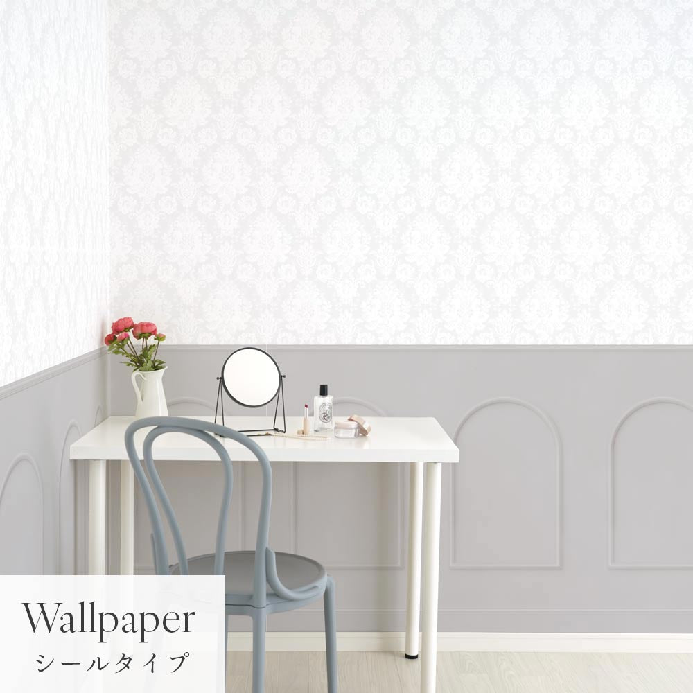 はがせる壁紙 シールタイプ Mon Sucrier パネリングゴージャス (49cm×3mサイズ) TMS-GGP03 ムーンストーン×グレーアーチ