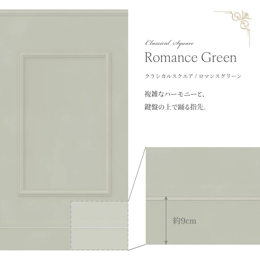 はがせる壁紙 シールタイプ Mon Sucrier ローワーウォールシート Lower wall sheet クラシカルスクエア TMS-LWS05 ロマンスグリーン