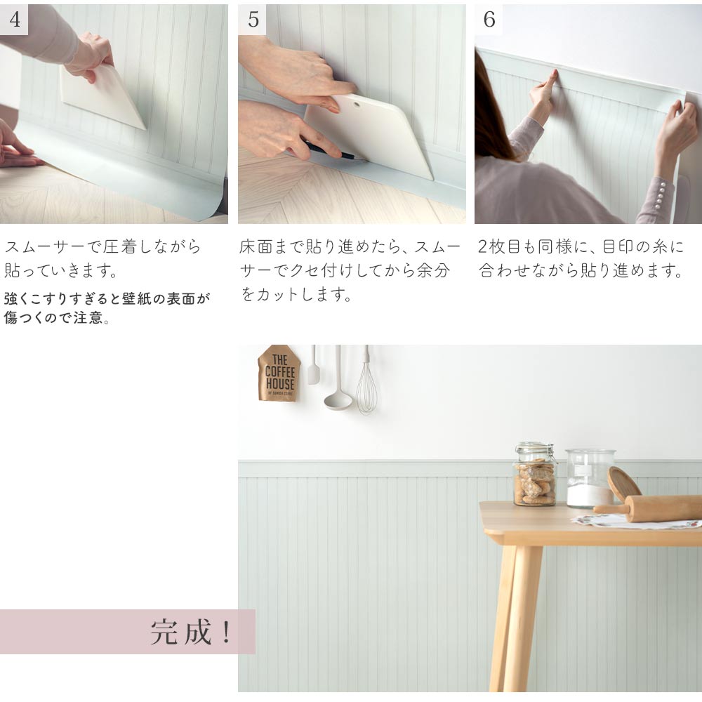 今ある壁紙の上から貼り付けるだけで、手軽に腰壁を楽しむことができます。