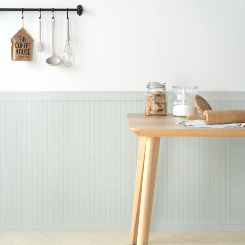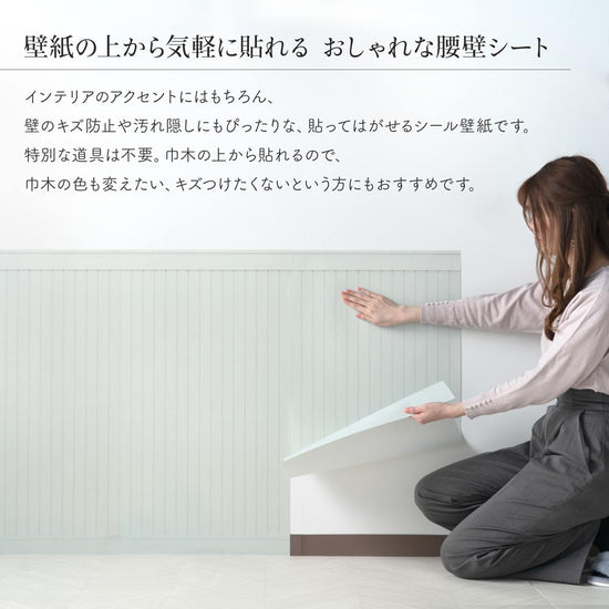 今ある壁紙の上から貼り付けるだけで、手軽に腰壁を楽しむことができます。