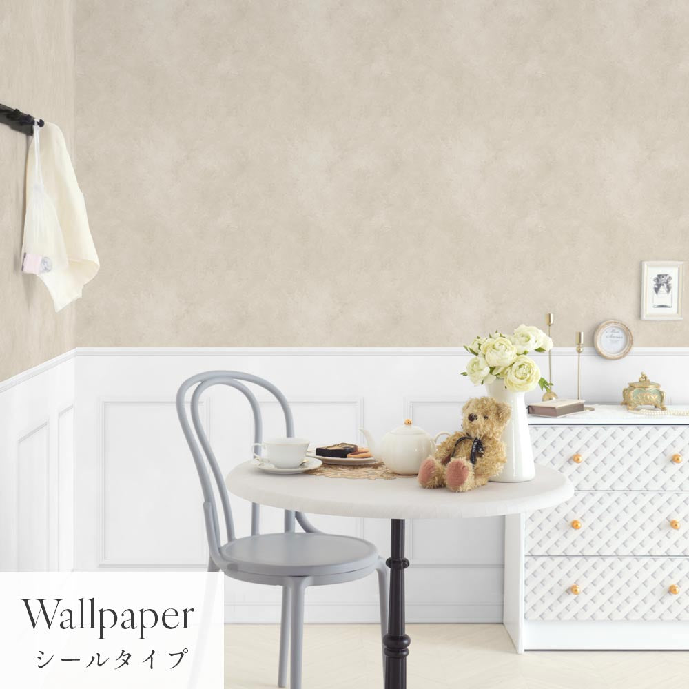 はがせる壁紙 シールタイプ Mon Sucrier パネリングカラーモルタル (49cm×3mサイズ) TMS-MTP02 グレージュ×ホワイトスクエア