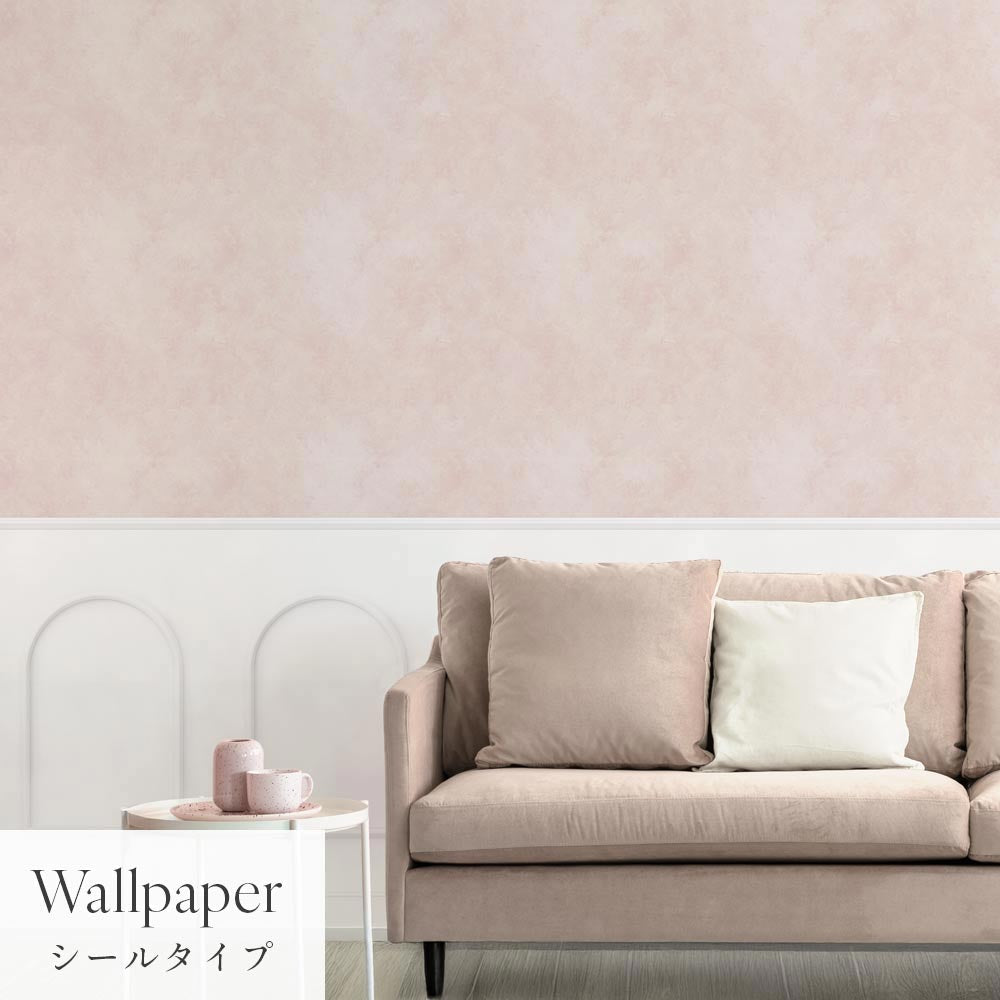 はがせる壁紙 シールタイプ Mon Sucrier パネリングカラーモルタル (49cm×3mサイズ) TMS-MTP04 ピンクグレージュ×ホワイトアーチ