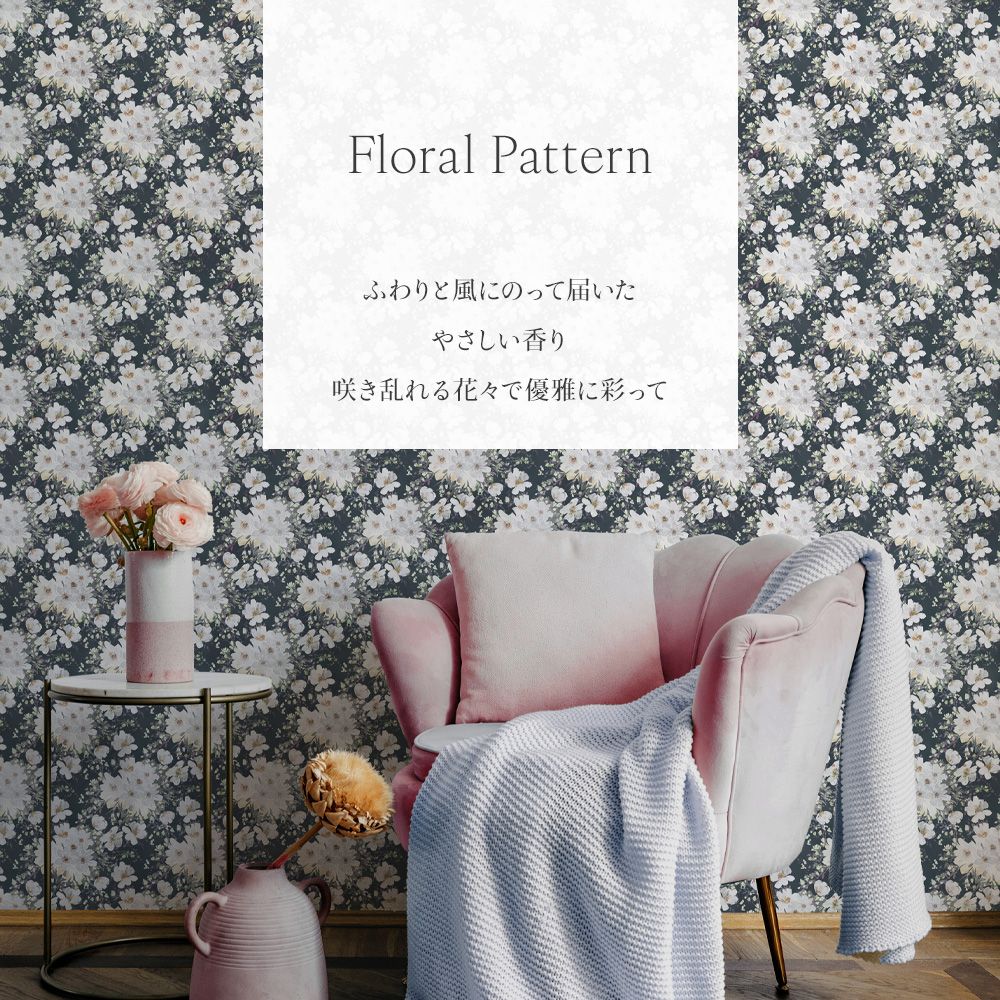 はがせる壁紙 シールタイプ Mon Sucrier 花柄 シークレットガーデン (49cm×3mサイズ) TMS-SG05 ミルクティー