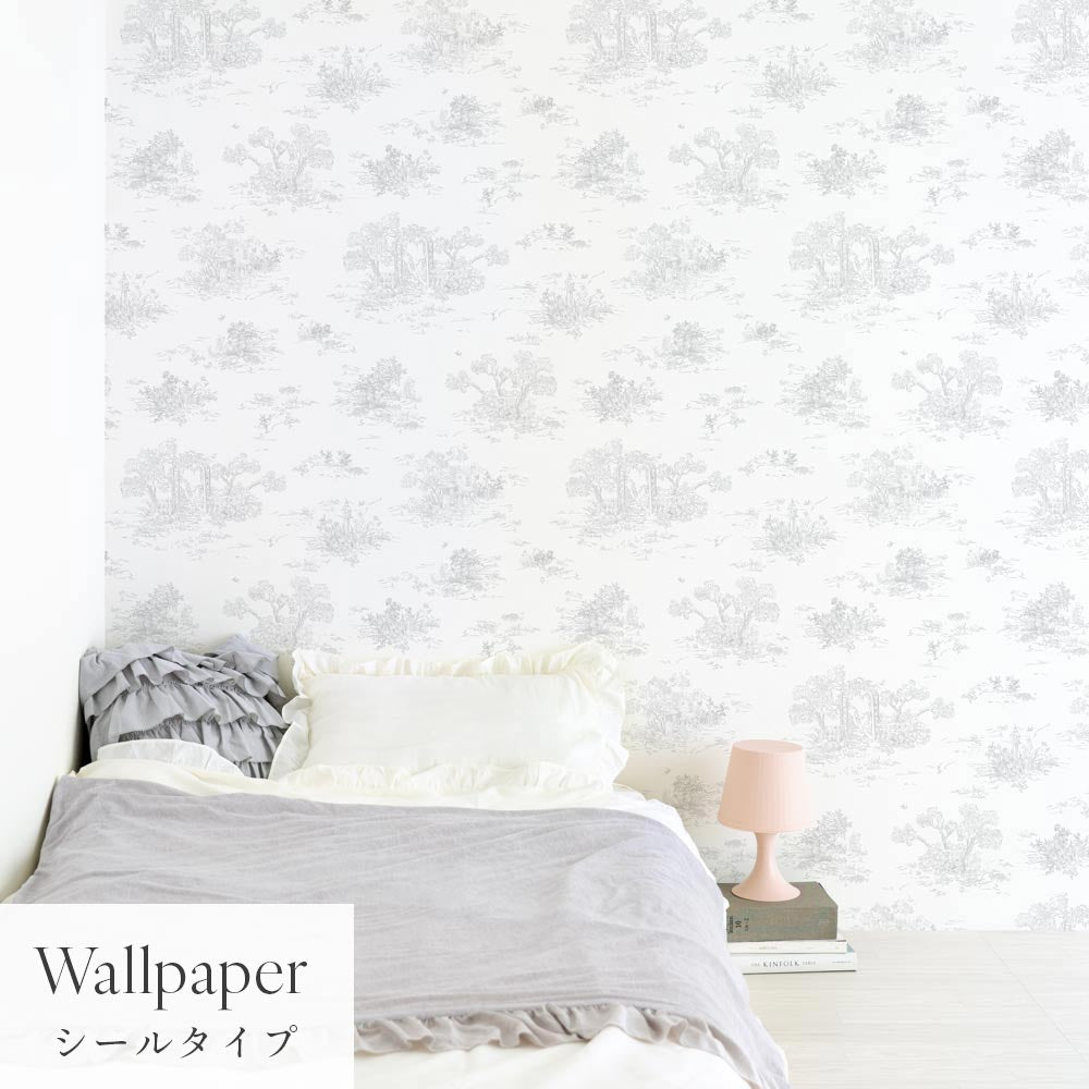 はがせる壁紙 シールタイプ Mon Sucrier トワル柄 トワル・ガーデン (49cm×3mサイズ) TMS-TG03 ミスト