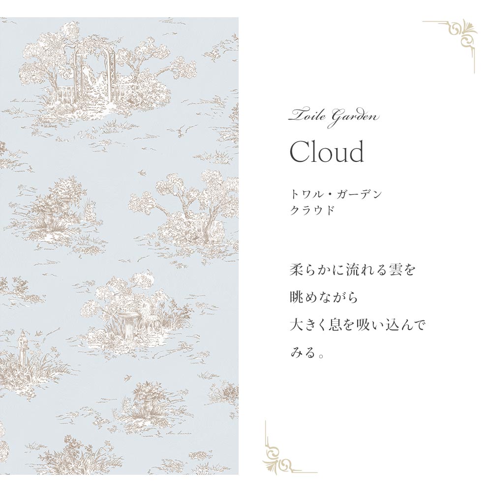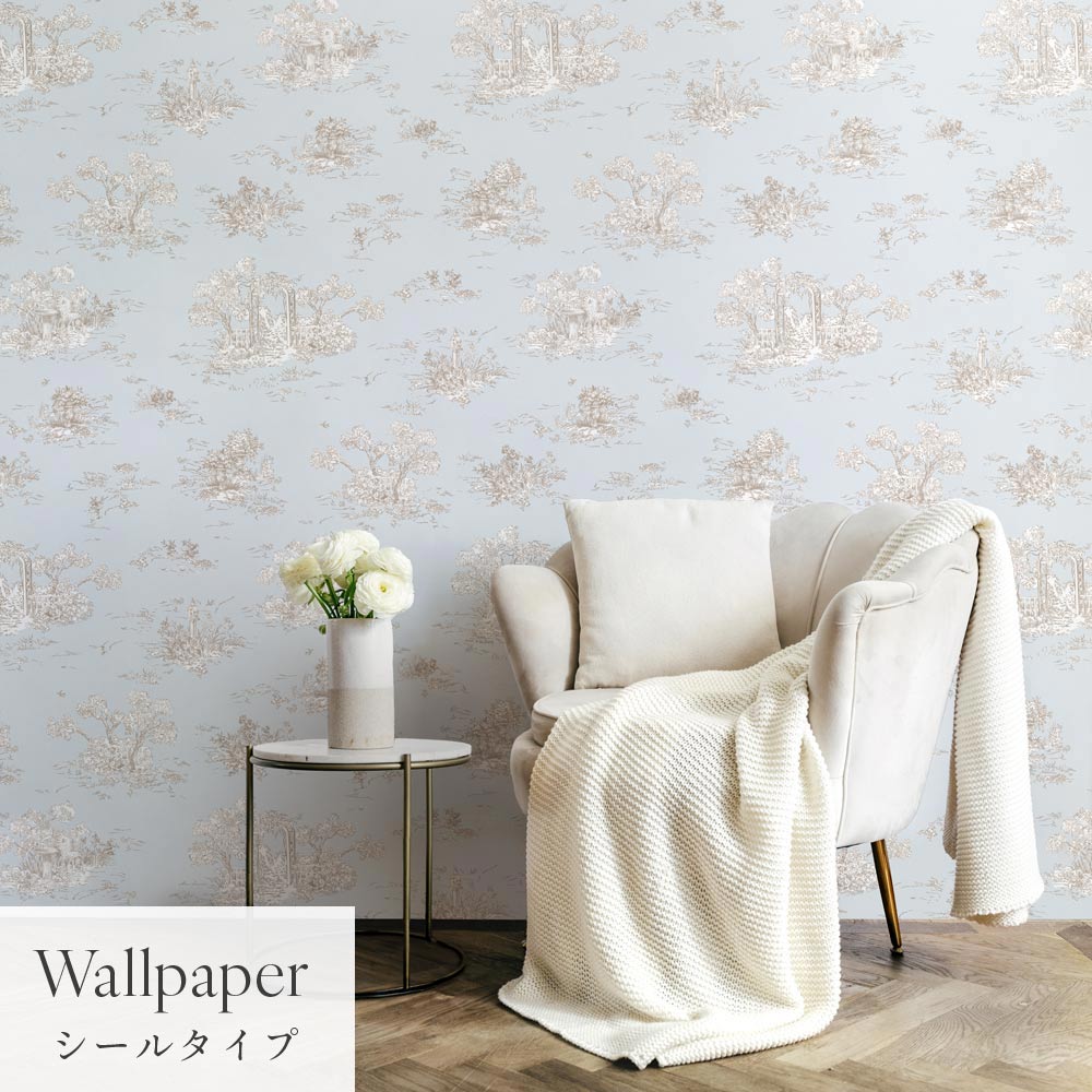 はがせる壁紙 シールタイプ Mon Sucrier トワル柄 トワル・ガーデン (49cm×3mサイズ) TMS-TG04 クラウド