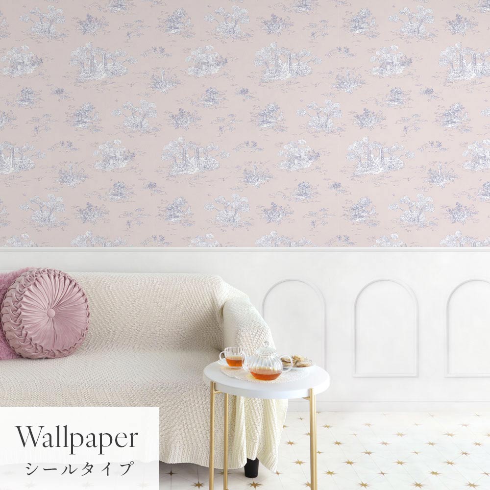はがせる壁紙 シールタイプ Mon Sucrier パネリングトワル (49cm×3mサイズ) TMS-TGP05 ペタル×ホワイトアーチ