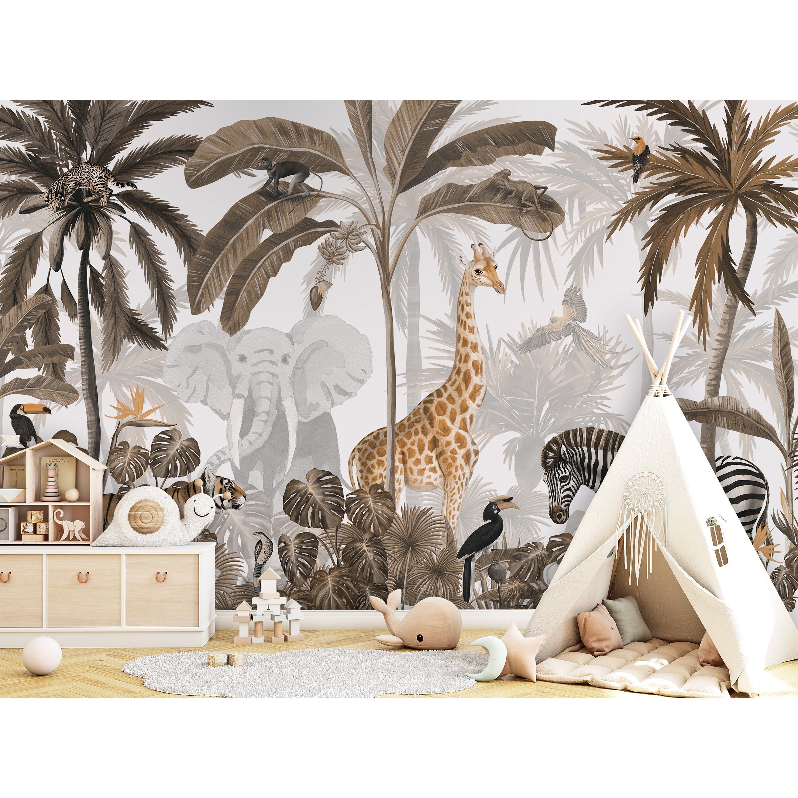 はがせるミューラル壁紙 シールタイプ KIKKI BELLE Jungle Jive Sepia W13324