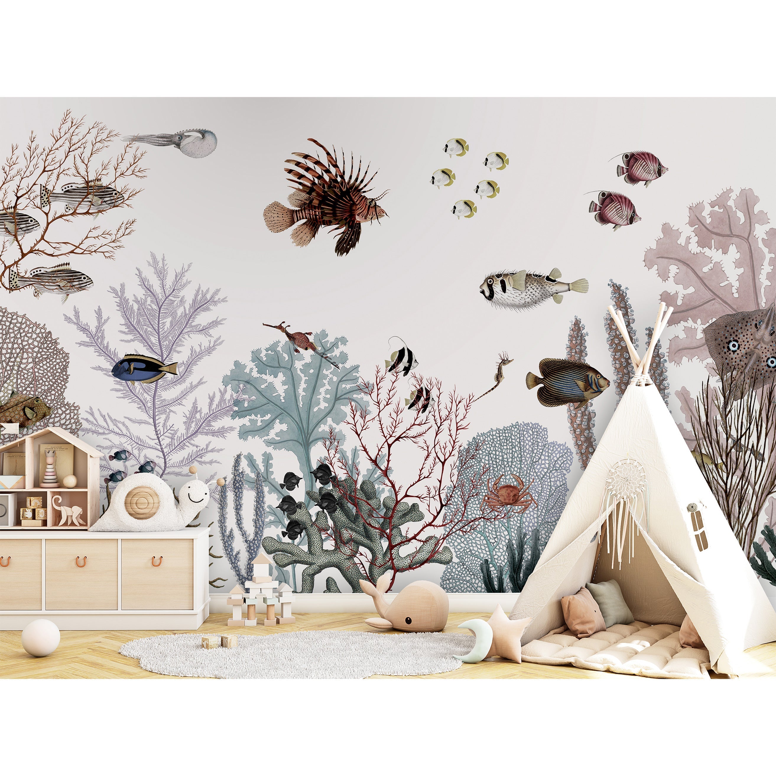 はがせるミューラル壁紙 シールタイプ KIKKI BELLE Roaring Reef - White W13381