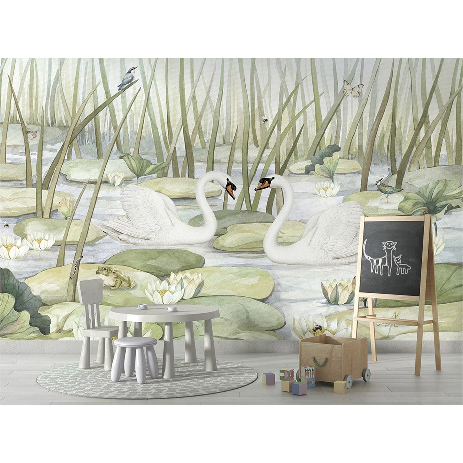 はがせるミューラル壁紙 シールタイプ KIKKI BELLE Spectacular Swans W13914